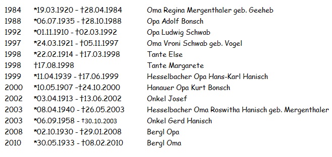 Jetzt hast Du endlich die Ruhe und den Seelenfrieden, der Dir die letzten Jahre so sehr gefehlt hat!