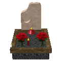 Memorials, memorial visitors, lit memorial candles
