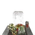 Memorials, memorial visitors, lit memorial candles