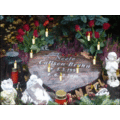 Memorials, memorial visitors, lit memorial candles