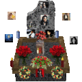 Memorials, memorial visitors, lit memorial candles