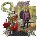 Memorials, memorial visitors, lit memorial candles