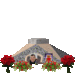 Memorials, memorial visitors, lit memorial candles