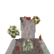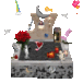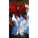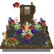 Memorials, memorial visitors, lit memorial candles