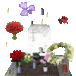 Memorials, memorial visitors, lit memorial candles