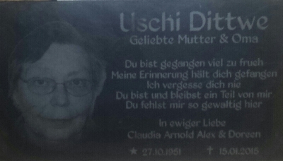 63 Jahre Uschi Dittwe27.10.1951 - 15.01.2015 [6.481 Besucher]