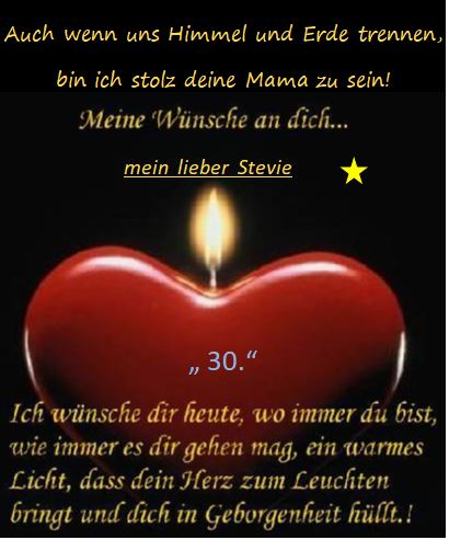 Da, wo Du gewesen bist, wirst Du heute so vermisst. Überall lebt Deine Seele fort, wo wir sind an jedem Ort. Stevie wir lieben und vermissen Dich.