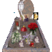 Memorials, memorial visitors, lit memorial candles